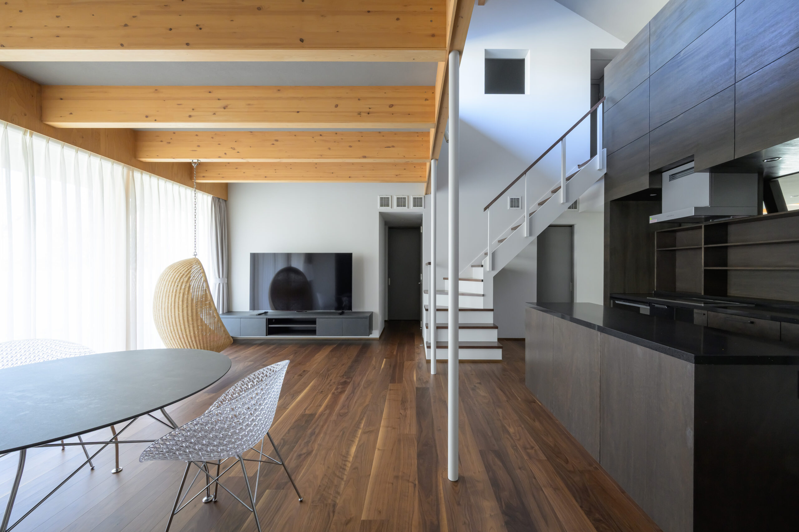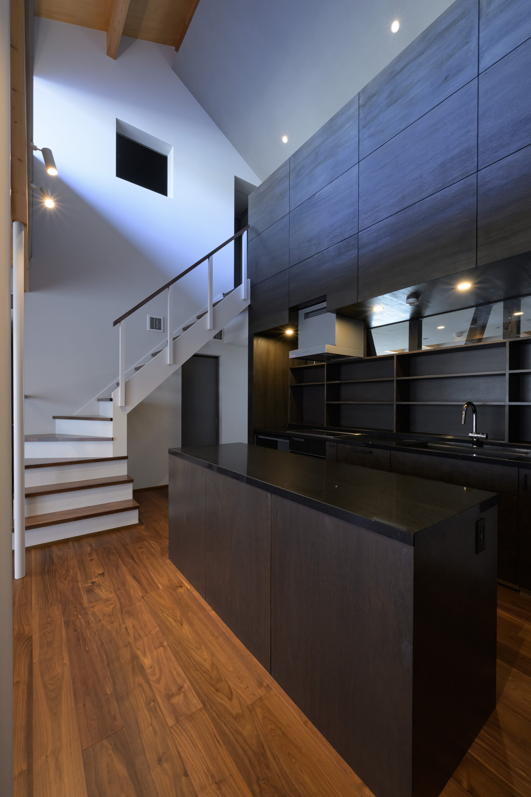 食事を中心に設計された住まいは、キッチンを中心に、家族が集う温かな空間です。